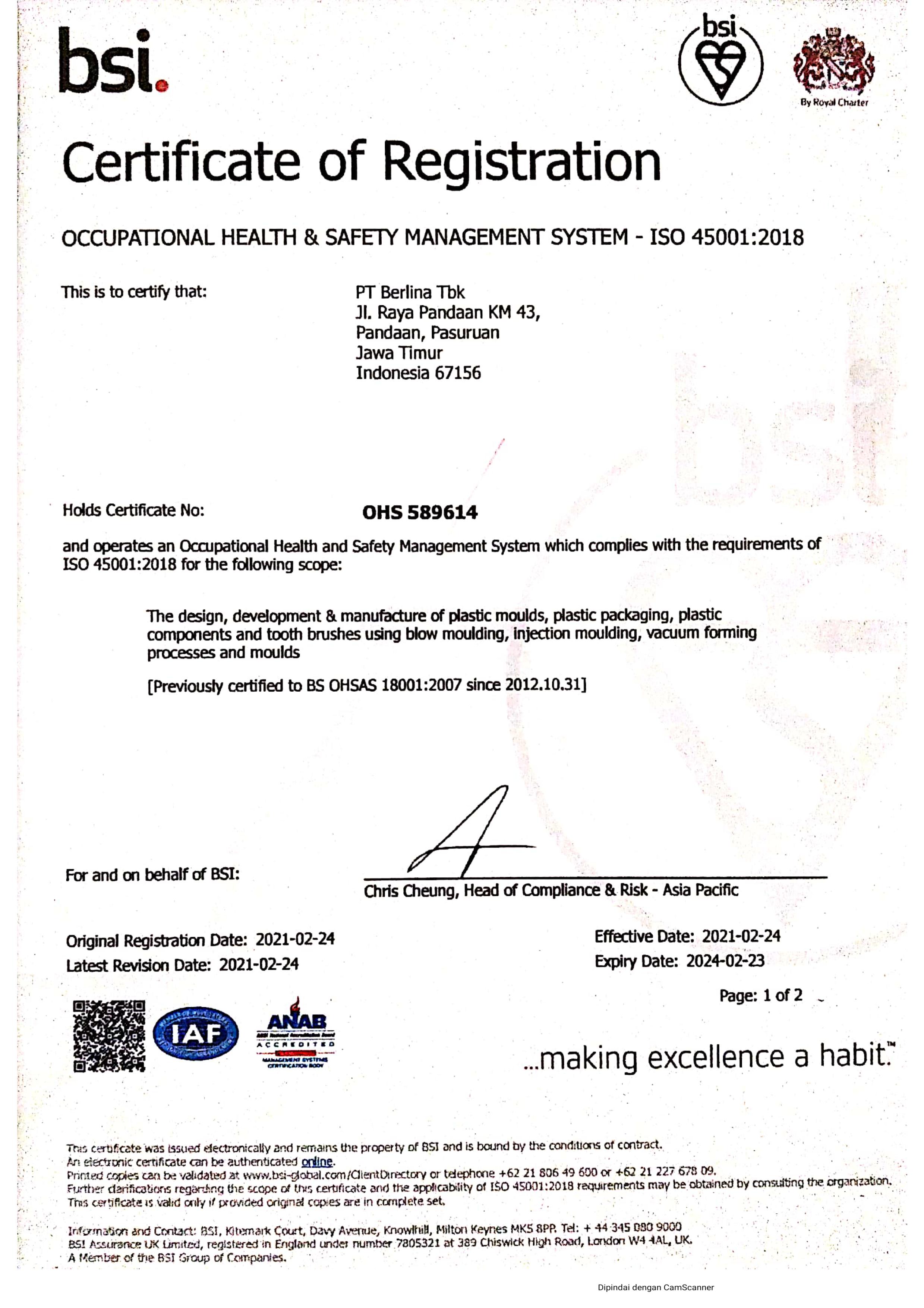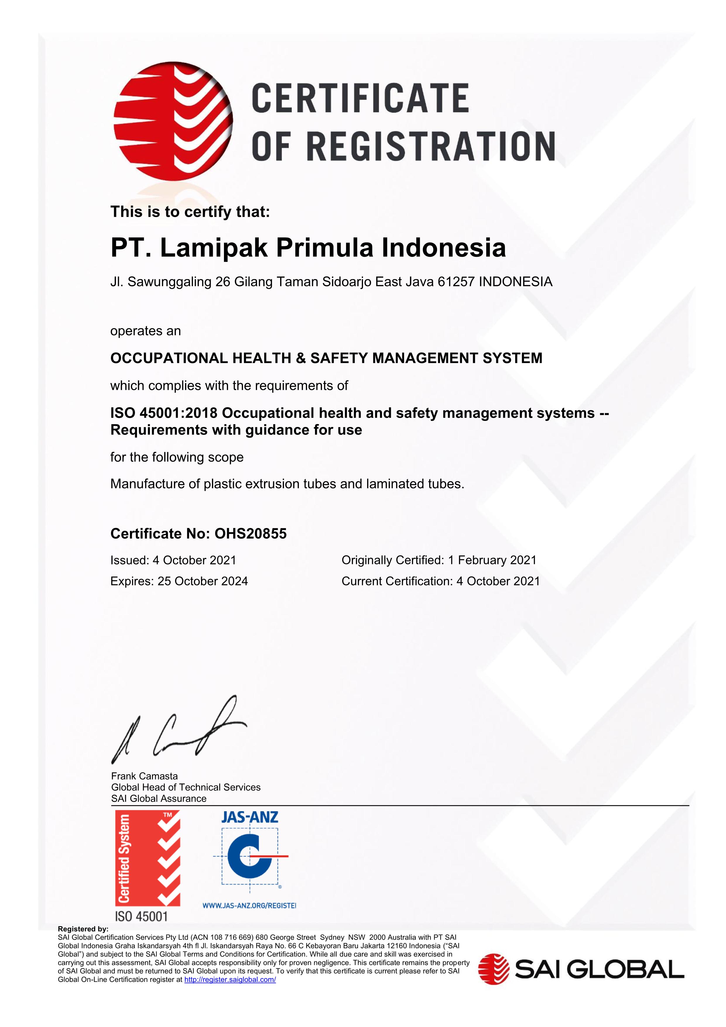 Occupational Health & Safety Management System 45001:2018 – OHS20855
