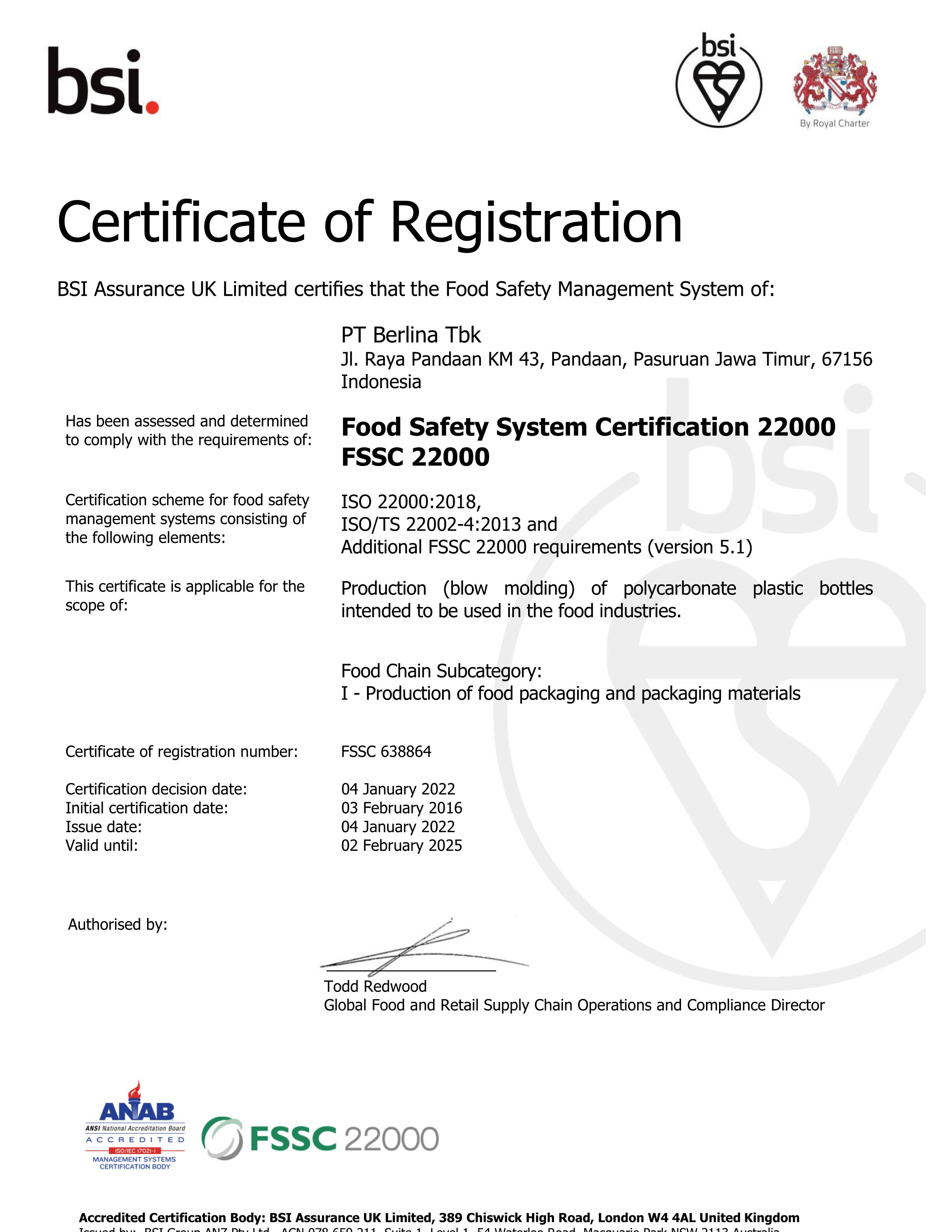 Food Safety Management System (FSSC) 22000:2018 - FSSC 638864