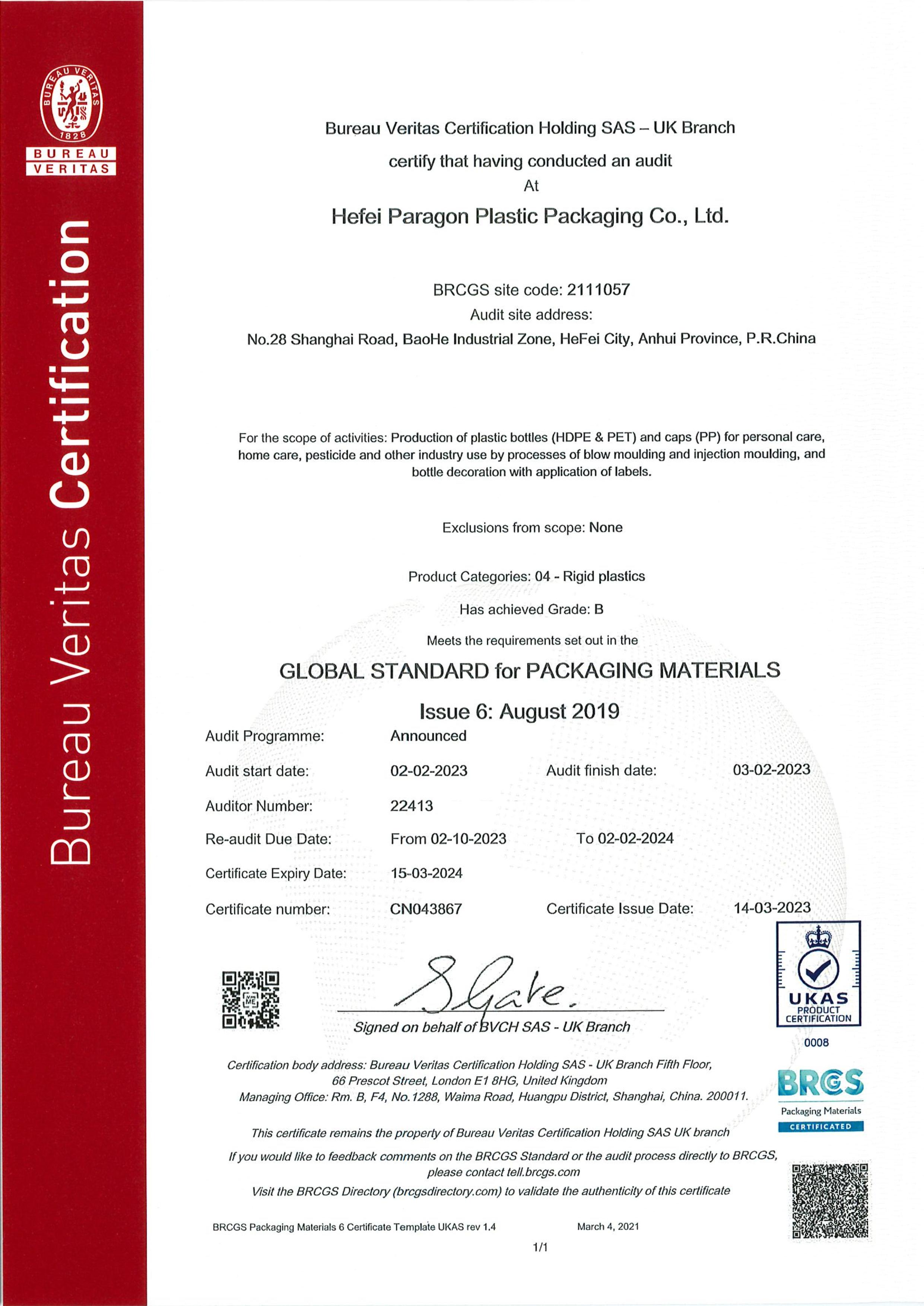 BRC Global Standard for Packaging Materials Issue 6 – CN037671